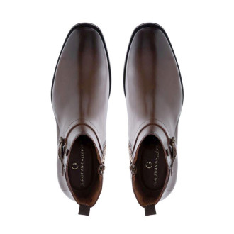 Botín elaborado en corte vacuno color Tabaco. Sin duda están hechos para darte estilo, distinción y comodidad en cada paso que des, sin olvidar el sello de nuestro pin que lo caracteriza.